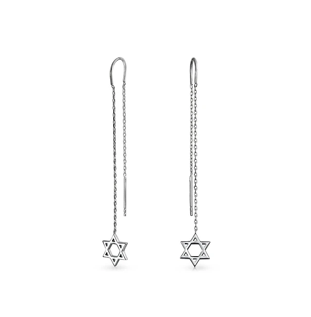 Bling Jewelry Sterling Silver Judaic Star Of David Dangle Earrings - Threader Style