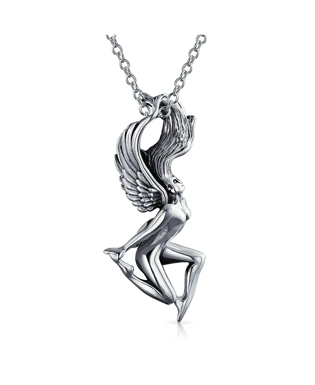 Bling Jewelry Angel Goddess Wings Pendant Necklace Antiqued Sterling Silver