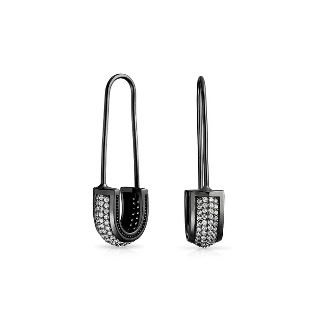 Bling Jewelry Symbol of Support displaced people Pave Cubic Zirconia Cz Safety Pin Threader Earrings .925 Sterling Silver