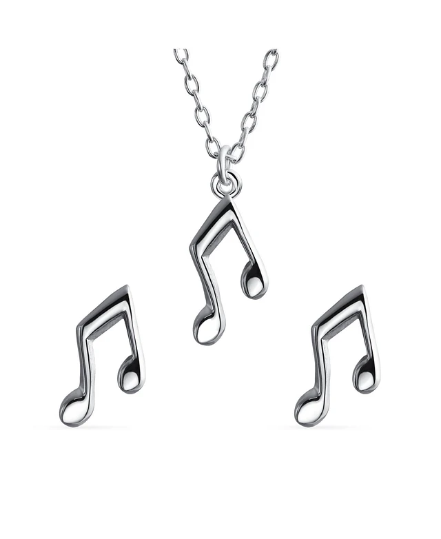 Bling Jewelry Tiny Dainty Eighth Music Notes Stud Earrings Pendant Musician Teacher Student .925 Sterling Silver Jewelry Set