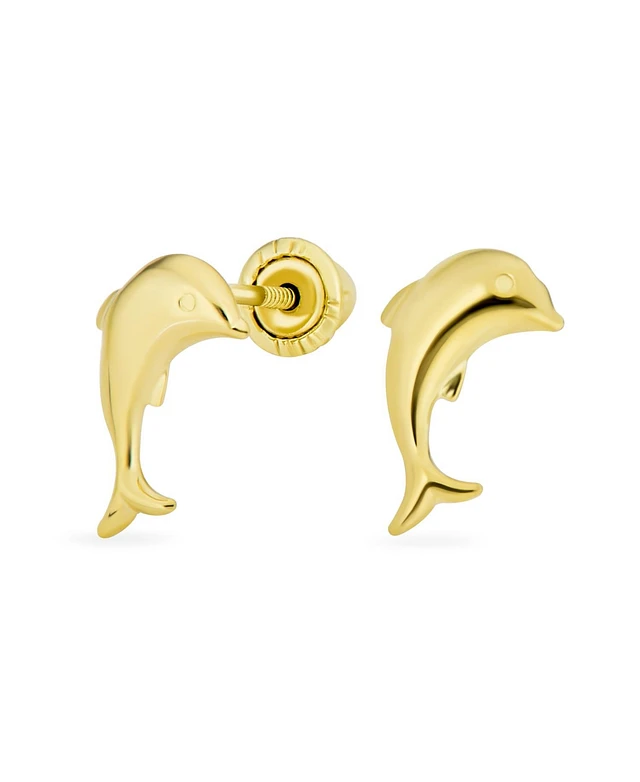Bling Jewelry Tiny Mini Minimalist Nautical Tropical Ocean Marine Life Real 14K Yellow Gold Dolphins Stud Earrings Safety Screw back