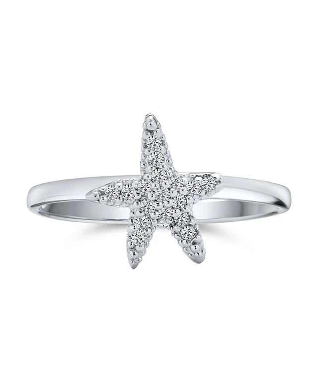 Bling Jewelry Tiny Pave Cubic Zirconia Cz Nautical Tropical Beach Starfish Ring .925 Sterling Silver
