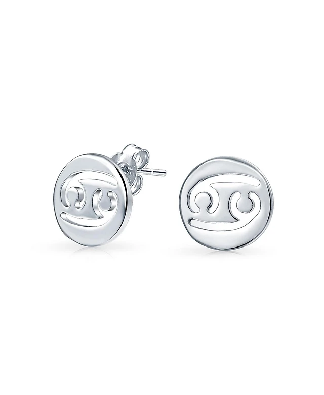 Bling Jewelry Tiny Simple Round Astrology Cancer Horoscope Zodiac Stud Earrings Sterling Silver