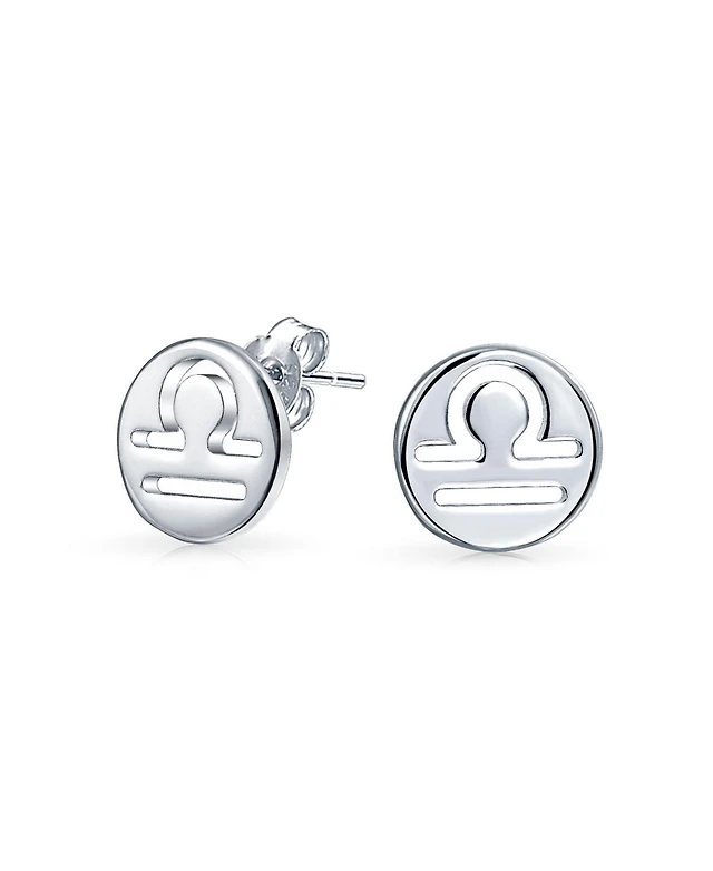 Bling Jewelry Tiny Simple Round Astrology Libra Horoscope Zodiac Stud Earrings Sterling Silver