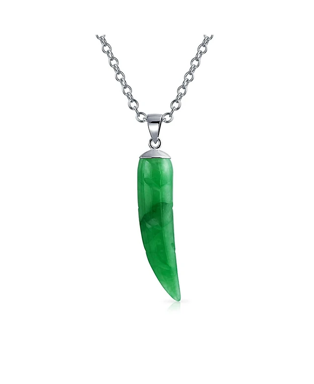 Bling Jewelry Tooth Amulet Green Natural Jade Italian Horn Pendant Necklace For Women s Men Sterling Silver