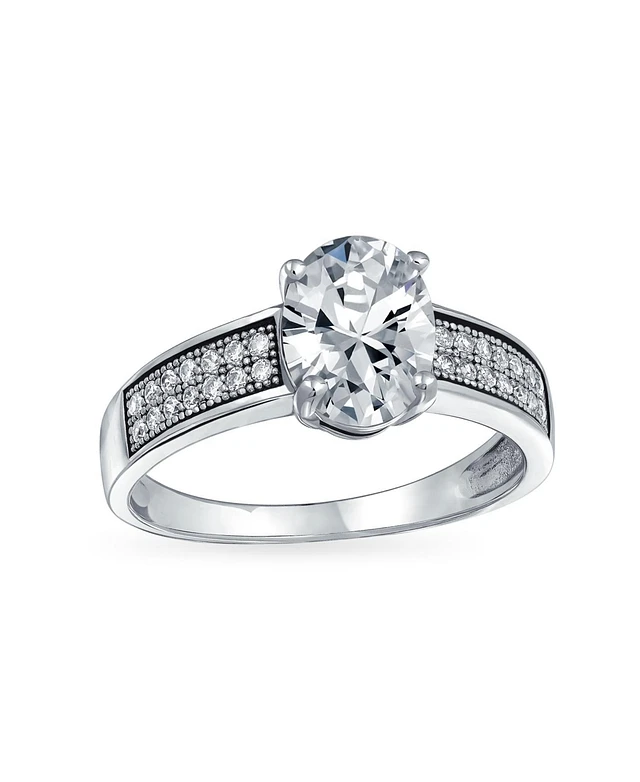 Bling Jewelry Traditional 2CT Cz Oval Solitaire Cubic Zirconia Promise Ring Micro Pave Band .925 Sterling Silver