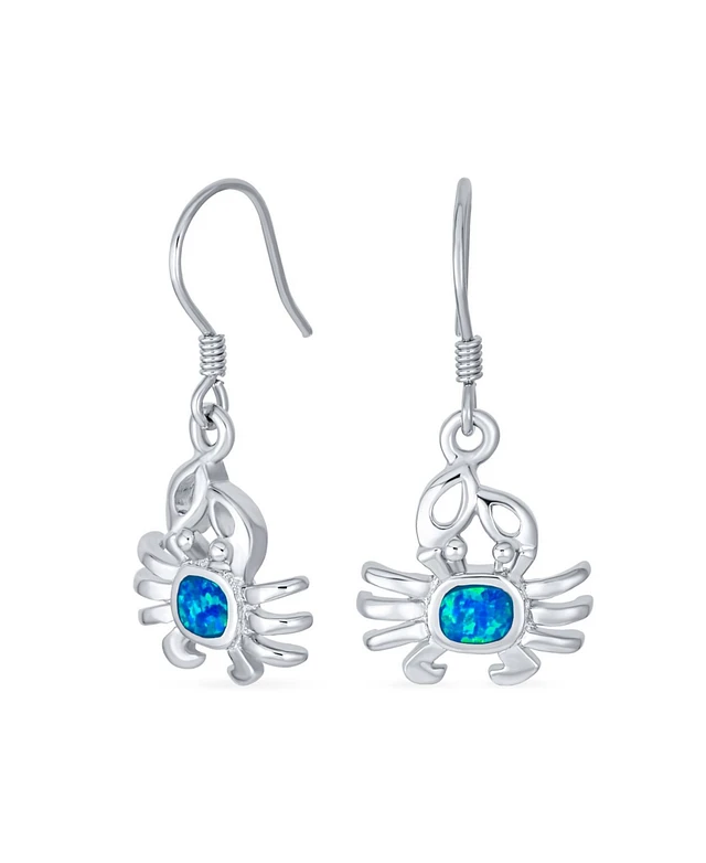 Bling Jewelry Tropical Blue Opal Dangle Stone Earrings Sterling Silver Crab Design