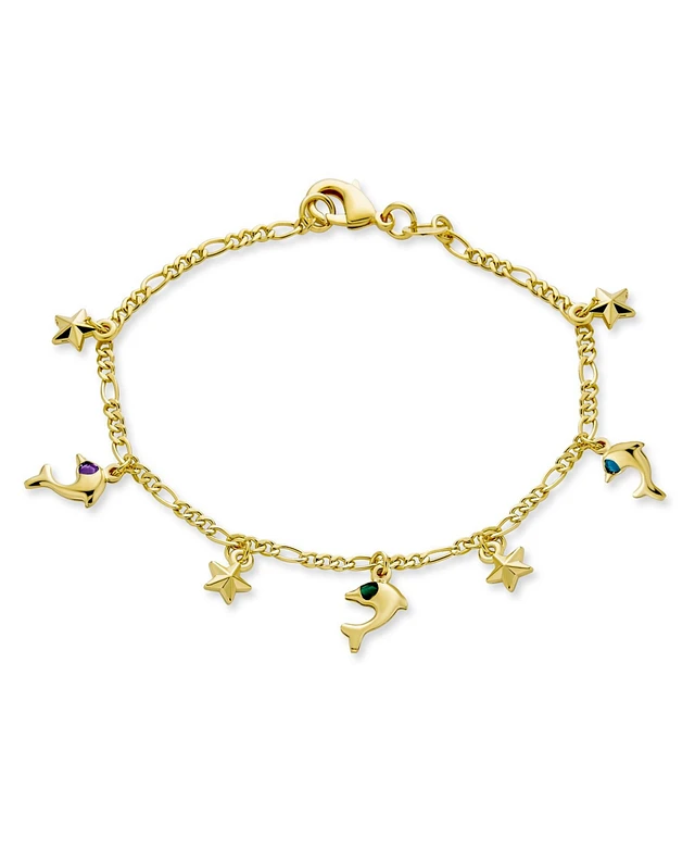 Bling Jewelry Tropical Vacation Honeymoon Jewelry Nautical Stars & Dolphin Charm Anklet Rolo Chain Ankle Bracelets 18K Gold Plated 10 Inch