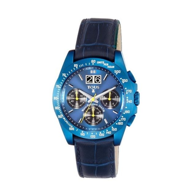 Blue anodized Steel Drive Crono Watch with blue Leather strap