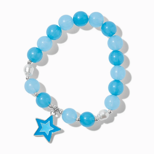 Claire's Club Blue Star Shaker Charm Beaded Stretch Bracelet