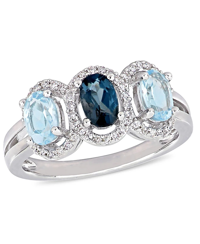 Macy's Blue Topaz (1-3/5 ct. t.w.) and Diamond (1/5 Halo Ring Sterling Silver