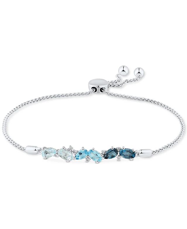 Blue Topaz (1-5/8 ct. t.w.) & White Topaz (1/20 ct. t.w.) Bolo Bracelet in Sterling Silver