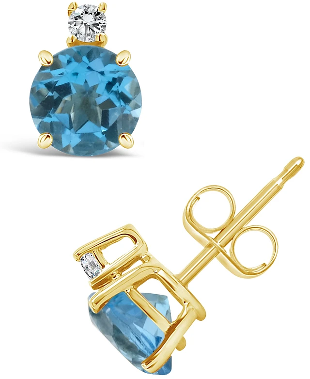 Macy's Blue Topaz (1-3/4 ct. t.w.) & Diamond Accent Stud Earrings in 14k Yellow Gold