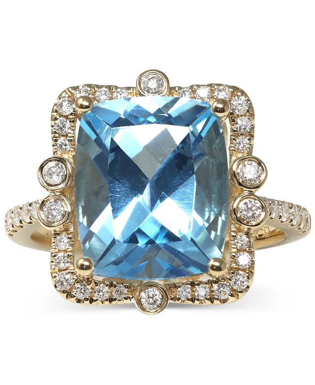 Blue Topaz (6 ct. t.w.) & Diamond (1/2 ct. t.w.) Cushion Halo Ring in 14k Gold