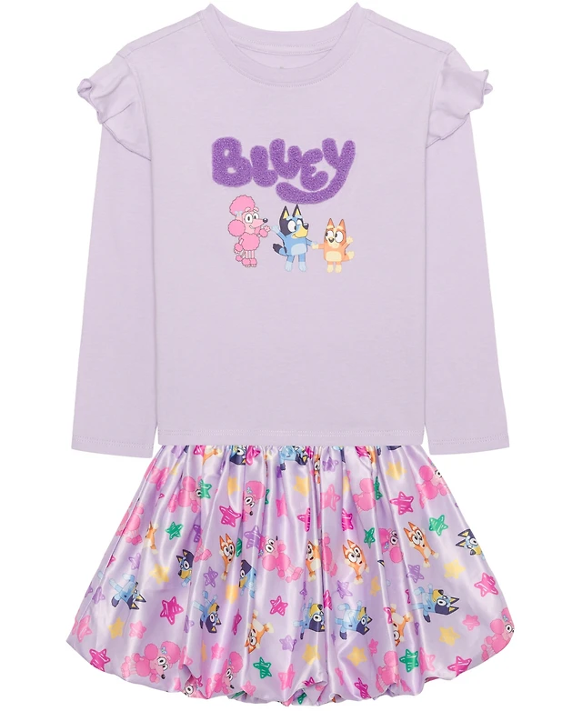 Bluey Toddler and Little Girls 2-Piece Long Sleeve Top Skirt Set