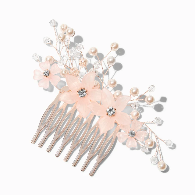 Pearl, Crystal, & Pink Flower Spray Hair Barrette
