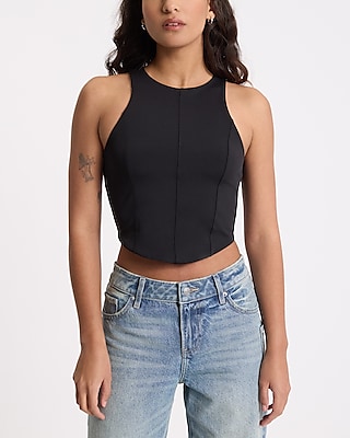 Body Contour High Compression Reversible Boat Neck Cropped Tank