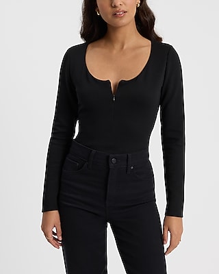 Body Contour Luxe Lounge Long Sleeve Zip Scoop Neck Bodysuit