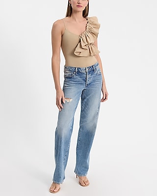 Body Contour Stretch Cotton High Neck Sleeveless Ruffle Bodysuit