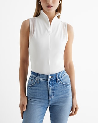 Body Contour Stretch Cotton Mesh Quarter Zip Bodysuit