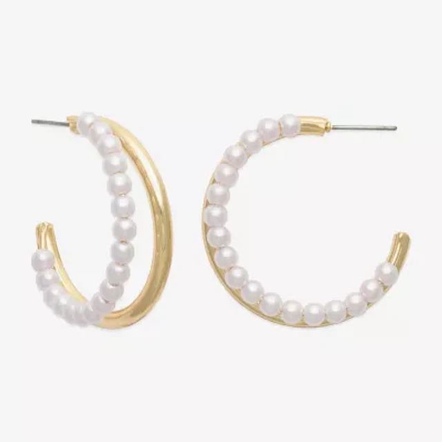 Bold Elements Gold Tone Womens Simulated Pearl 36.9mm Hoop Earrings