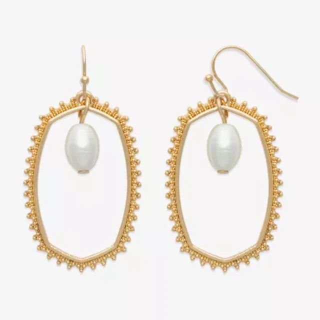 Bold Elements Gold Tone Womens Simulated Pearl Drop Earrings