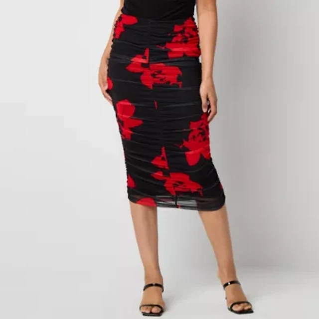 White Mark Victoria Womens Mid Rise Stretch Fabric Midi Pencil Skirt