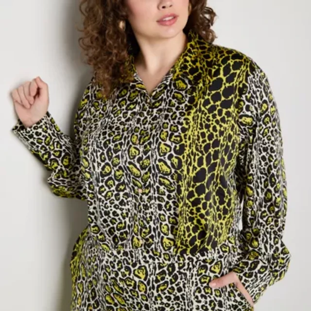 St. John's Bay Womens Plus Roll Tab Long Sleeve Regular Fit Button-Down Shirt