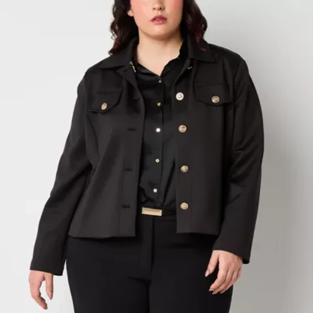 Avenue Women's Plus Brushed Long Shirt Jacket