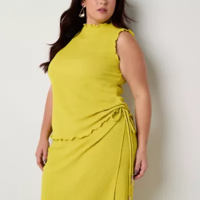 Womens Plus Sleeveless Mock Neck Top, 1X-2X