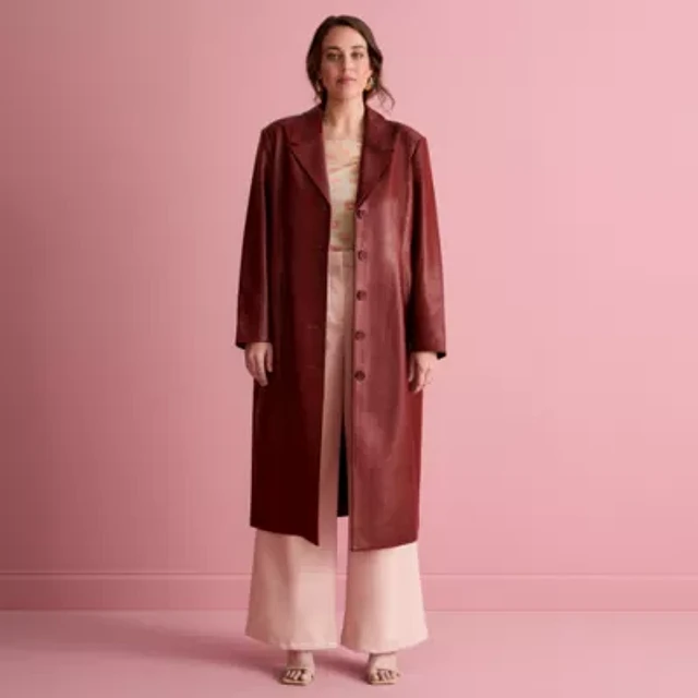 Bold Elements x Ally Brooke Womens Plus Faux Leather Lightweight Trench Coat
