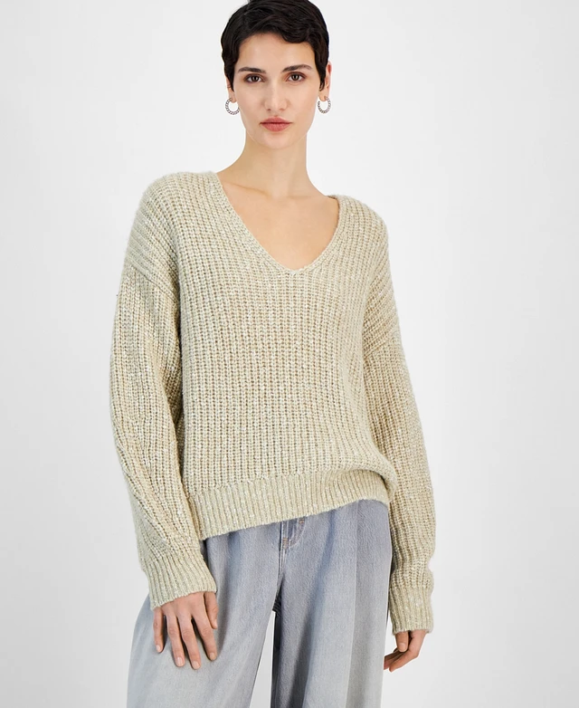 Boss Orange Women's Metallic V-Neck Drop-Shoulder Sweater