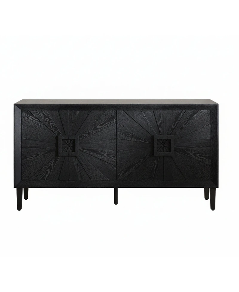 Boyel Living 60" Rustic Farmhouse Wood Credenza with Symmetrical Sunburst Doors