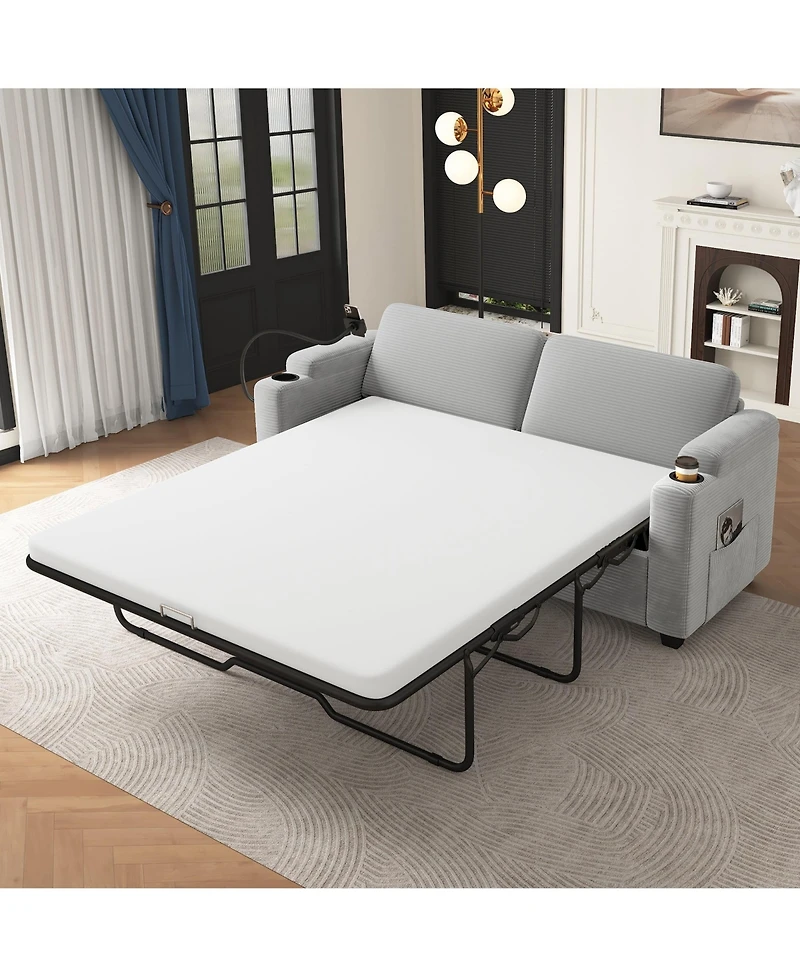 Boyel Living 72.8" Corduroy Sleeper Sofa Loveseat with Full Mattress, Two Usb Ports, Cup Holders, Side Pockets and a Phone Holder