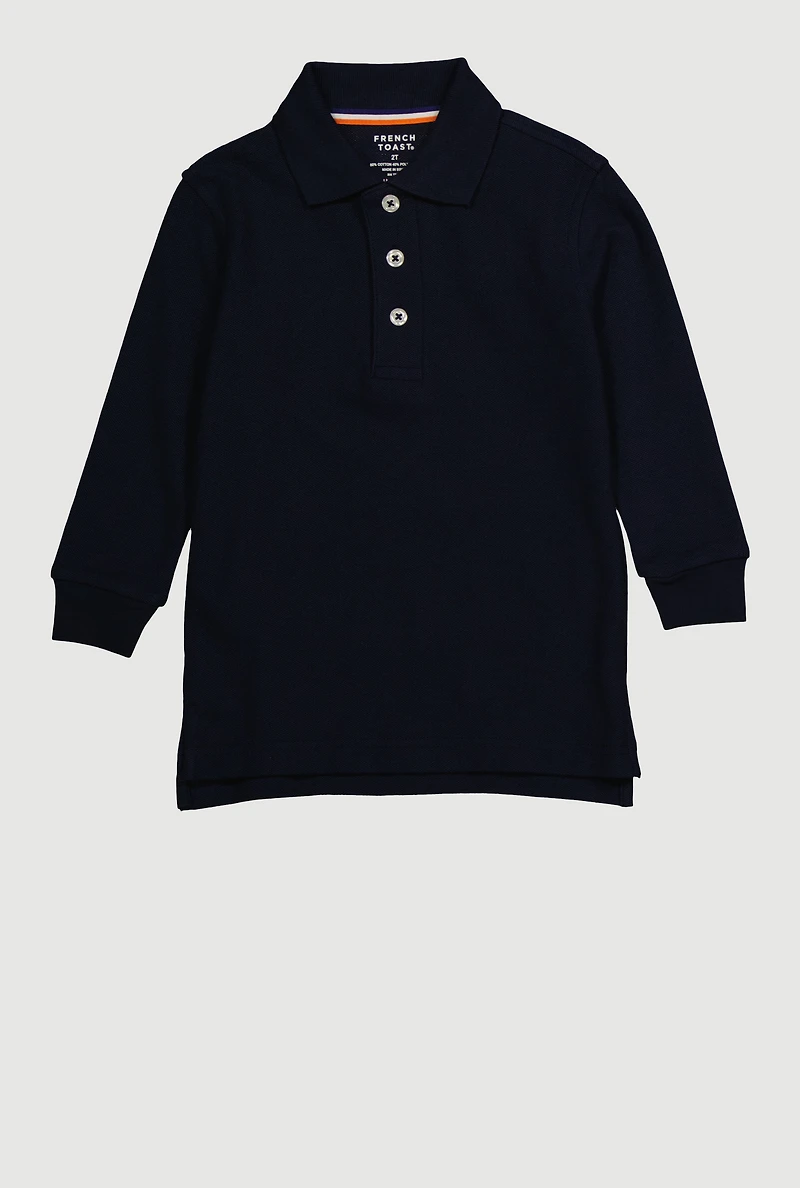 Boys 2T-4T Long Sleeve Polo Shirt with Picot Collar