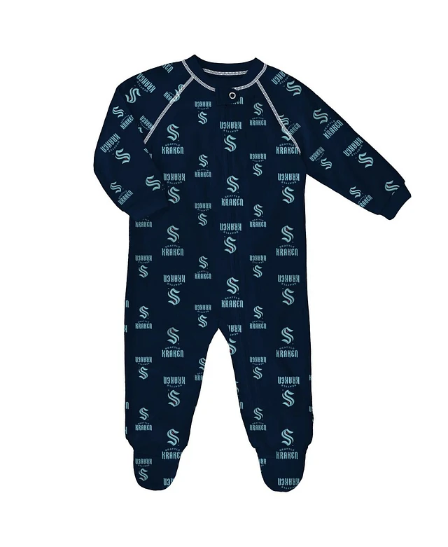 Boys and Girls Infant Outerstuff Deep Sea Blue Seattle Kraken Team Raglan Full-Zip Sleeper