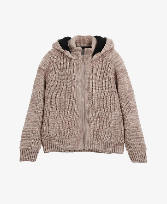 Boy's Hooded Faux Shearling Lining Full Zip Sweater With Moto Design Arm Piece