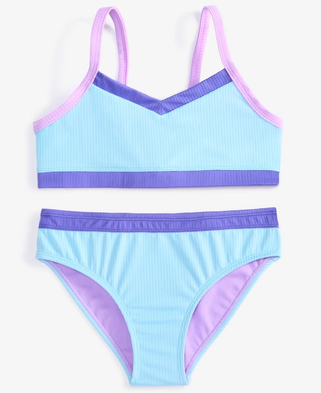 Snapper Rock Big Girls Candy Colorblock Crop Bikini
