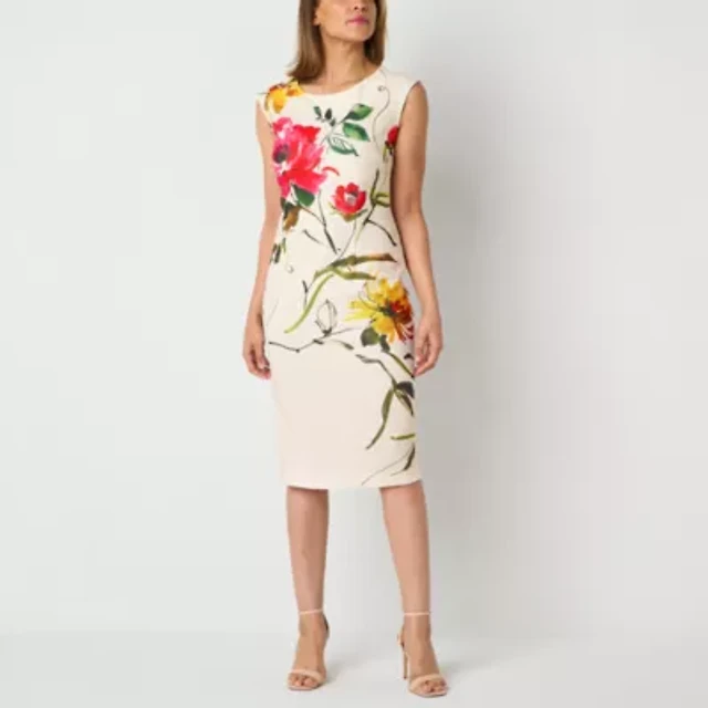 Brianna Milay Womens Sleeveless Midi Floral Sheath Dress