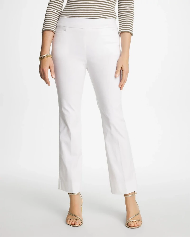 This new iteration of our Brigitte™ Crop Flare features a more subtle flared leg and crop silhouette. Made with Chico's proprietary So Slimming® built-in shaping solution to sculpt your shape + angled front pockets to enhance the effect.