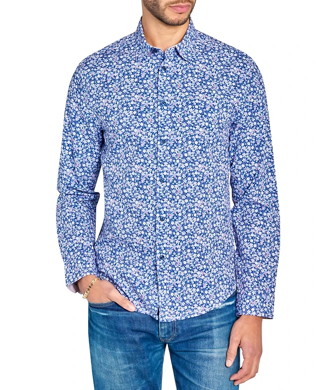 Men's Slim Fit Non-Iron Floral-Print Performance Stretch Dress Shirt