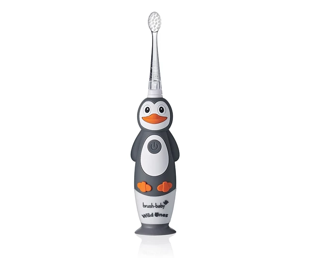 Brush-Baby WildOnes Penguin Kids Electric Rechargeable Toothbrush | Childrens Electric Toothbrush | Animal Character Toothbrush