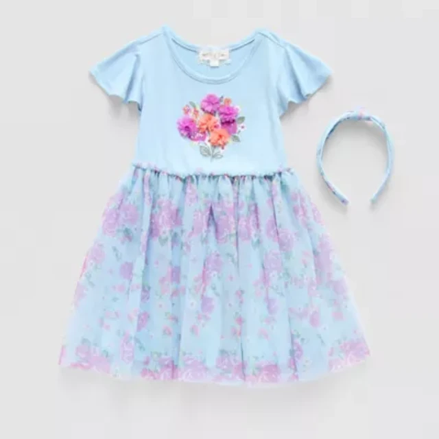 Lilt Little & Big Kid Girls Short Sleeve Ruffled A-Line Dress
