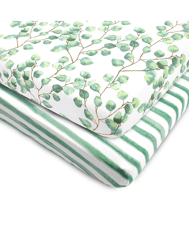 The Peanutshell Pack n Play, Mini Crib, Portable Crib or Fitted Playard Sheets for Baby Boy or Girl, 3 Pack Set, Green Safari