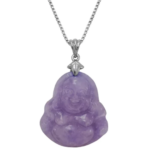 Buddha Womens Genuine Purple Jade Sterling Silver 18 Inch Pendant Necklace