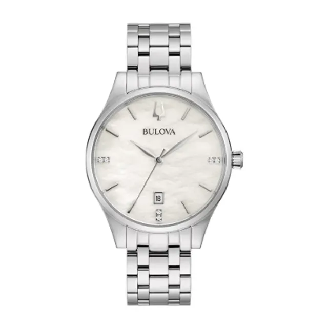 Bulova Womens Diamond Accent Silver Tone Stainless Steel Bracelet Watch 96p252
