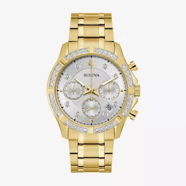 Bulova Diamond Mens Gold Tone Stainless Steel Bracelet Watch 98e113