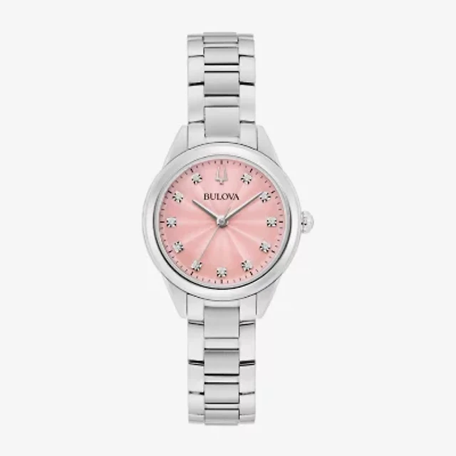 Bulova Womens Diamond Accent Silver Tone Stainless Steel Bracelet Watch 96p252
