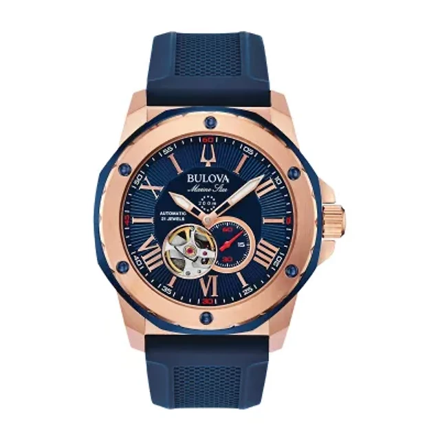 Bulova Marine Star Mens Automatic Blue Strap Watch 98a227