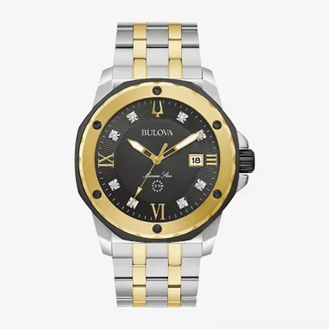 Bulova Marine Star Mens Diamond Accent Two Tone Stainless Steel Bracelet Watch 98d175